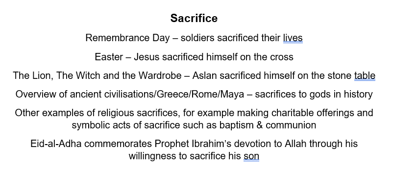 Looking at the Remembrance Day poppies on lamp posts led me to reflect on the number of times children may come across the word sacrifice during their primary school years. It’s a concept that spans several subjects, creating diagonal links as explained by Clare Sealy here1 . So I thought I’d start a new series of mini-blogs highlighting some of these high yield concepts and how you can track them throughout your school’s curriculum. Please let me know if I’ve missed any links and I’ll add them in. They’re in no particular order.